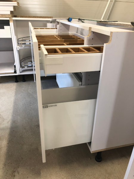 Anyagfelhasználásunk igen sokrétű. Ügyfeleink tudnak választani a fényes felületű, furnéros és élőfa között. Fényes felületek 3 fajtáit tudjuk kínálni: Festett, polygloss és akryl. A fényes lapok élzárásait, színazonos fényes ABS élzáróval látjuk el. A festett felületeket, szintén több éves szakmai tapasztalattal rendelkező festőnk végzi, igen magas fokon. A fényes felületet, utolsó fázisában felpolírozzuk! A bútorok vázszerkezeteit, szintén ABS élzárással látjuk el. Cégünk csak is kiválló minőségű Blum vasalatokat használ. A Blum fiók és felnyíló rendszereit, akár elektromos kivitelben is tudjuk szerelni. (SERVO DRIVE)